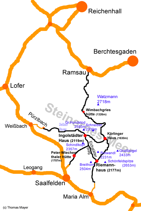 Zustieg von Kufstein (2 – 2,5 h): Vom Kaisertalparkplatz führt der breite Weg die berühmte Kaisertaltreppe in vielen Stufen hinauf zur Fahrstraße, die über den Veitenhof taleinwärts zu den Pfandlhöfen führt. Kurz dahinter gabelt sich der Weg – wer den direkten Zustieg wählt, bleibt rechts, wer 15-30 Minuten mehr Zeit hat sollte sich links halten. So erreicht er in Kürze die berühmte Antoniuskapelle, wohl das bekannteste Fotomotiv des Kaisergebirges. Über den Hinterkaiserhof führt der Weg dann wieder hinab zur Fahrstraße und zum Anton- Karg-Haus in Hinterbärenbad.